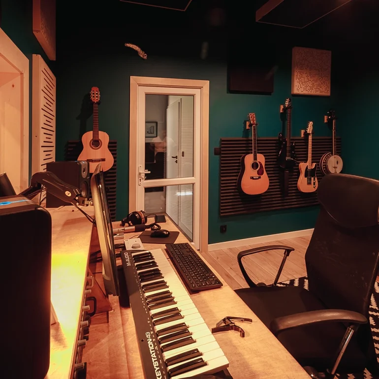 Sesja zdjęciowa studio nagraniowego dla producenta muzycznego.