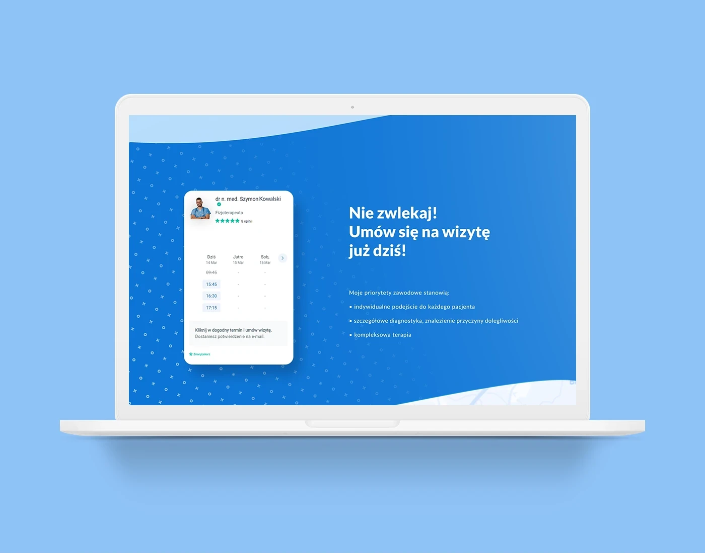 Projekt strony wizytówki dla fizjoterapeuty.