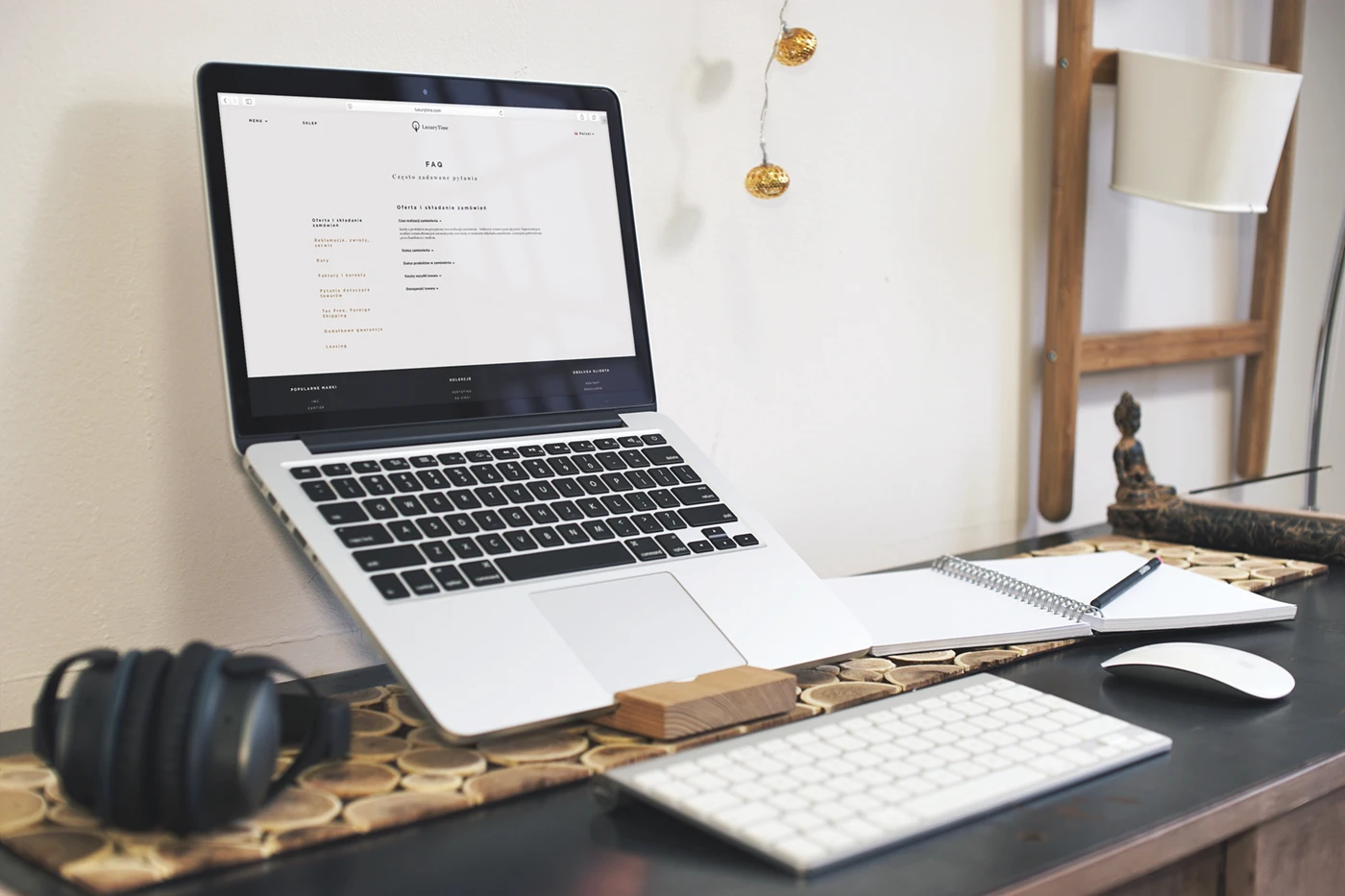 Nadanie koloru złotego dla akcentów podkreśla luksus, którego szuka użytkownik oraz ekskluzywność firmy oraz produktów, które ta oferuje.