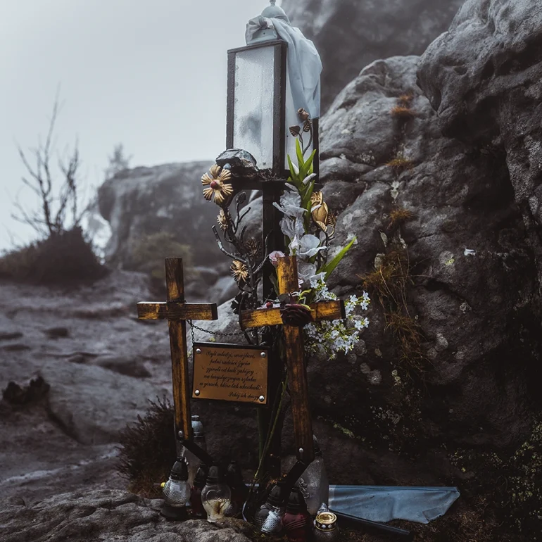 na pograniczu Polski i Czech. Ta unikatowa formacja skalna przyciąga uwagę turystów swoją niezwykłą formą, przypominającą czaszkę.